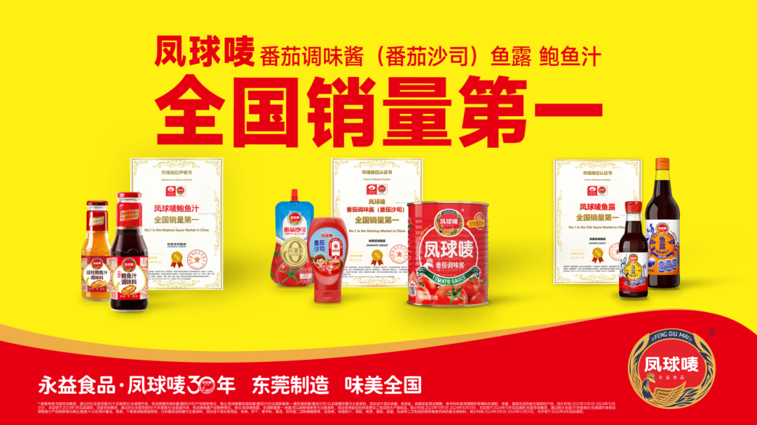 此后多年,“一罐酱、一辈子”的匠心精神贯穿全品类布局与发展。在鱼露赛道,于2024年登顶全国销量第一;在鲍鱼汁领域,2025年获得全国销冠认证。截至2025年,“凤球唛”品牌旗下三大核心品类持续保持全国销量领先地位……从一款番茄调味酱到三大核心品类全国领先,永益食品用实践证明,唯有以“一辈子”的执着打磨“一罐酱”的品质,才能在行业中站稳脚跟、铸就标杆。