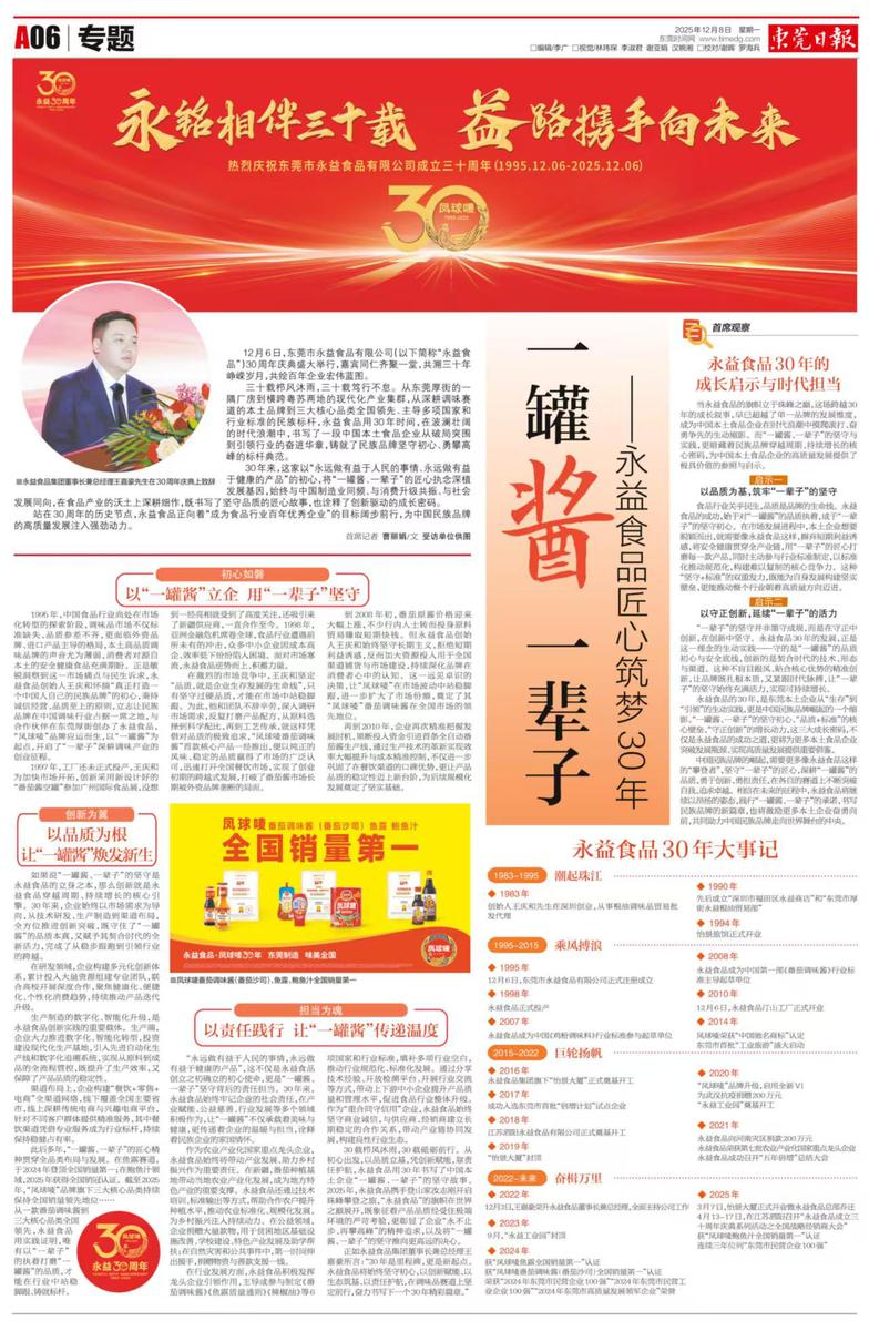 永益食品的30年,是东莞本土企业从“生存”到“引领”的生动实践,更是中国民族品牌崛起的一个缩影。“一罐酱、一辈子”的坚守初心、“品质+标准”的核心壁垒、“守正创新”的增长动力,这三大成长密码,不仅是永益食品的成功之道,更将为更多本土食品企业突破发展瓶颈、实现高质量发展提供重要借鉴。