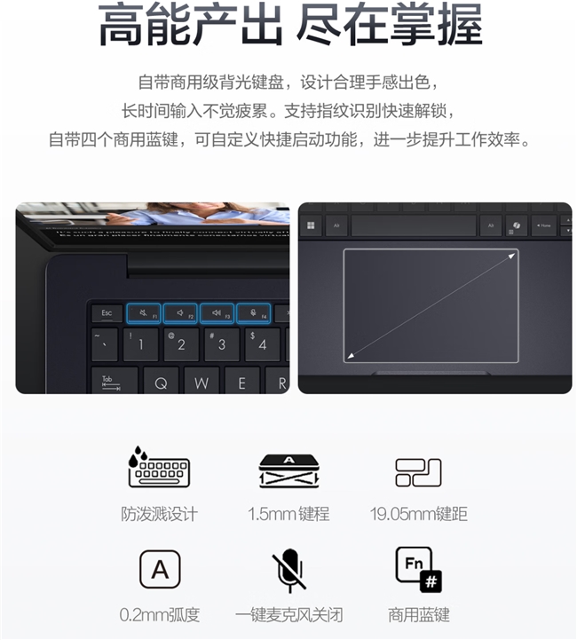 商用级背光键盘手感舒适,长时间输入不易疲劳;四颗可自定义快捷键让常用功能一键直达;指纹识别模块与电源键合二为一,实现一键开机秒进系统,兼顾便捷与安全。Wi-Fi 7与蓝牙5.3的加持,则保障了无线连接的高速与稳定。