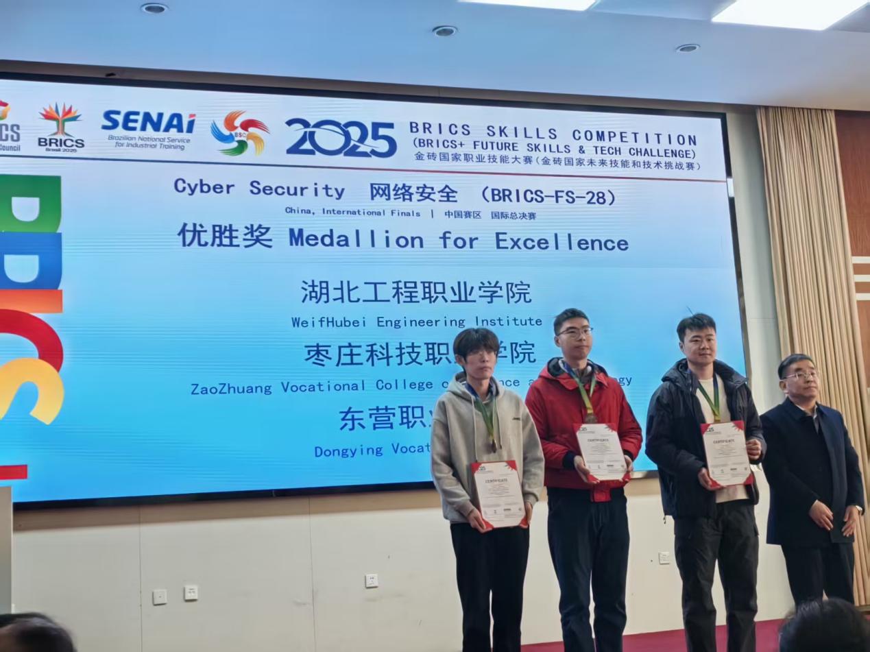 近日,2025金砖国家职业技能大赛网络安全赛项国际总决赛在潍坊工程职业学院落下帷幕。自中国、南非、俄罗斯、印度、加纳5个国家的68支队伍经过线上线下的激烈角逐,东营职业学院教师丁牟华、学生曲彦芃组成的参赛队,最终成功斩获该赛项国际总决赛一等奖。
