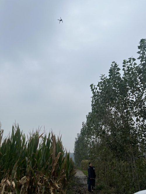 (阳光财险山东分公司利用无人机在受灾玉米田上空进行精准测绘与识别)