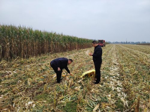 (阳光财险山东分公司在受灾玉米地查看受灾情况)