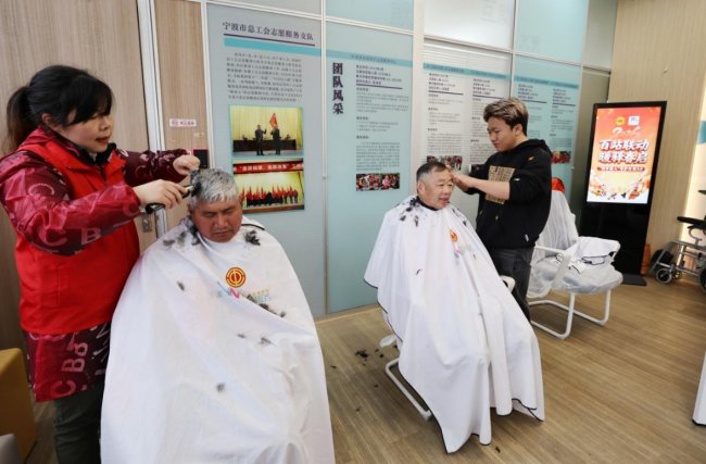 “刚好趁着这次机会,清清爽爽过个年!”看着镜中的新发型,来自广西的保安蒋家龙眼中是掩饰不住的满意。从快递员到保安,在甬奋斗十多年,蒋家龙亲眼见证了宁波对“城市超人”不断升级的关爱。