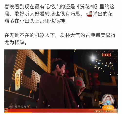 网友纷纷评论“春晚贺花神美到词穷,华流才是顶流”“十二花神,十二首诗,十二种人生况味,文化底蕴拉满”“体会到了中华传统文化的博大精深”……