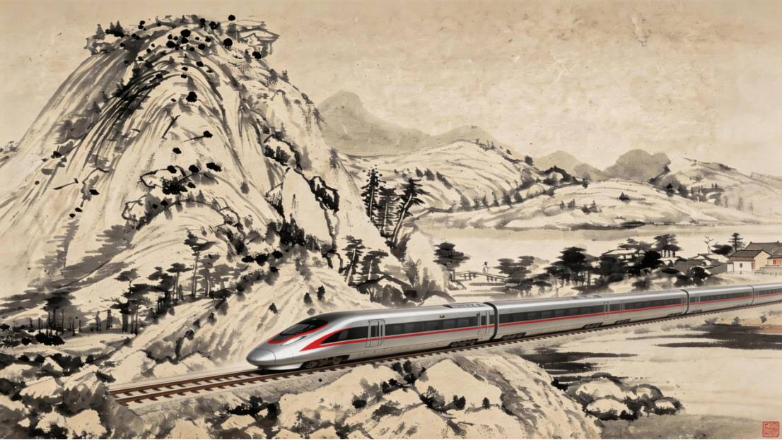 兰江泛碧,远山含黛。高铁列车如银龙穿云,掠过山、掠过水、掠过田畴与古镇,把“富春山居图”的千年静穆化作今日的烟火升腾。未来,当第一缕晨光掠过新安江面,当最后一班列车驶入兰溪站台,我们回望这段44公里的新线,看到的不仅是钢铁与速度,更是一条通向共同富裕的康庄大道,一幅属于新时代、也属于每个人的“富春山居图”。(作者/AI漫画:席忠翔)