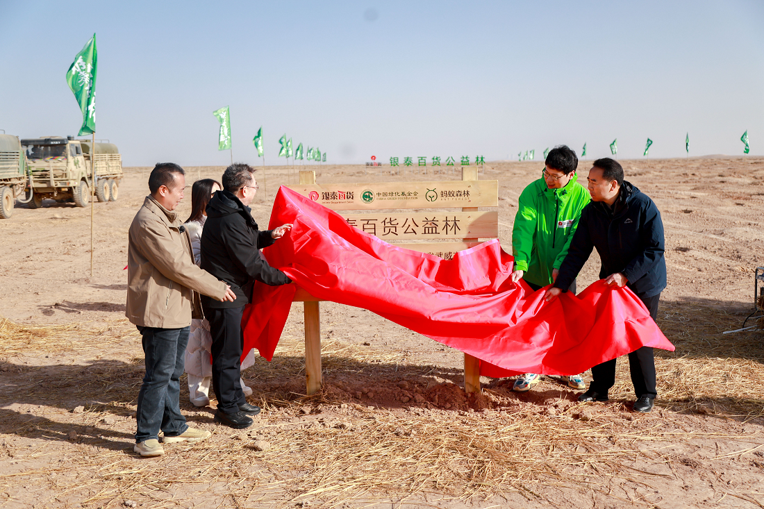 中国绿化基金会、甘肃省各级林草管理部门以及来自全国各地的银泰百货员工、顾客、志愿者共同见证并参与了此次春种活动。