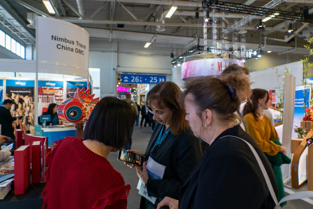 在现场,黄山工作人员化身文化使者,不仅展示了这一传承数百年的非遗项目,更邀请国际友人亲手体验舞动鱼灯。当火红热烈的鱼灯在国际友人手中“游动”起来,他们难以置信自己远隔重洋竟也能感受到别具风格的中国传统文化。展台一侧,循环播放的黄山德语宣传片也吸引了众多目光,片中四季流转的绝美风光让观众仿佛身临其境,不少人在看完宣传片后,对黄山之行更添向往。