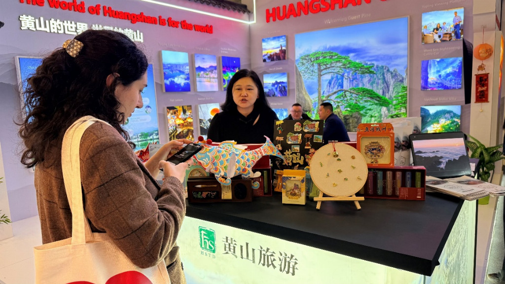 在展台的文创展示区,以黄山松石云海和文房四宝为原型的“黄山好礼”冰箱贴,凭借精巧的设计和深厚的文化内涵,吸引了很多游客和参展商的关注。无论是象征坚韧的奇松,还是代表翰墨飘香的徽州文脉,这些来自黄山的文创礼品,已然成为外国朋友了解中国文化的一种方式。