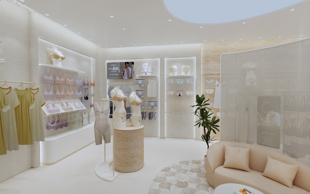 步入伊维斯门店,独具艺术感的灯光与布局,通过「流畅度」「私密性」「视觉锤」打造出以“沉浸式体验”为核心的空间,优雅展示产品的同时完成与消费者的深度链接。流畅的空间动线、松弛的留白空间,既呼应内衣的「私密属性」,更满足购物者追求的呼吸感「空间体验」,每一次到店,都是一场与自我、与美、与舒适的温柔相逢。
