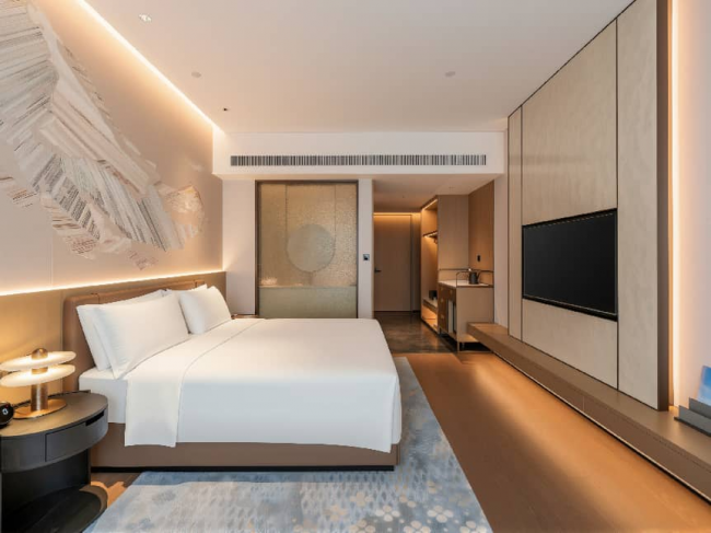 酒店共设218间舒适典雅的客房,配备高品质床品与智能客控系统,让入住更便捷舒心。会议空间总面积超过1500㎡,其中格兰宴会厅面积约700㎡,最多可容纳600人,并配有专业的会务全流程服务,可满足不同规格论坛、商务会议及宴会等多元需求。