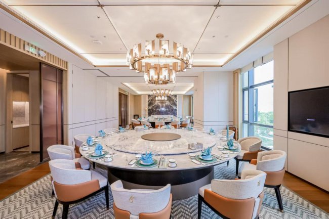 美食方面,太极中餐厅设有十个包房,融合中式美学与现代舒适设计,主打粤菜、高端湖北菜、川湘菜等精致佳肴;汇厨全日餐厅提供从本地风味到异国特色的多元美食;伊索格蘭则奉上纯正的埃塞俄比亚咖啡。此外,酒店还配有健身房、瑜伽室、全景景观泳池等康体设施,以及融合新中式风格与高空城景的茶室,为宾客带来全方位的休闲体验。