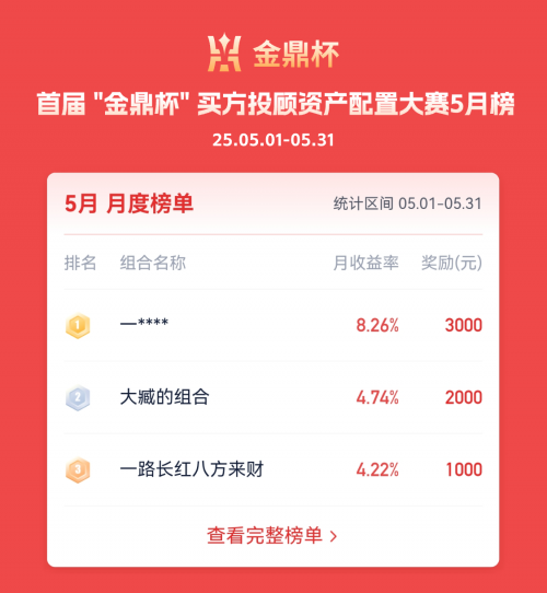 图:首届“金鼎杯”买方投顾资产配置大赛5月榜TOP3