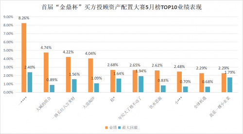 图:“金鼎杯”买方投顾资产配置大赛月榜前十名参赛组合的业绩及回撤表现