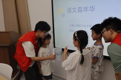 志愿者化身“小导师”,带领孩子们开启语文探索之旅。趣味成语接龙中,孩子们通过肢体动作传递成语,既锻炼了表达能力,又深化了对成语的理解;诗词拼图赛环节,志愿者以古诗意境视频导入,孩子们分组完成“拼诗+背诵”挑战,并在志愿者赏析中感受诗词的韵律之美。现场欢声笑语不断,传统文化种子悄然播撒。