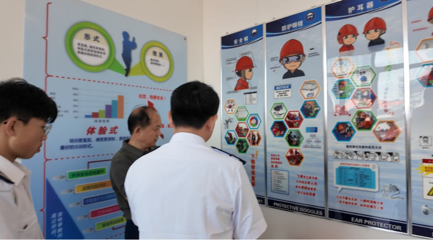 在船员安全体感训练中心,实践队亲身体验了船舶应急实操训练。中远海运“三个习惯、两个做法”中的安全准则,“开阔水域至少保持1海里避让距离”,将安全意识融入船员应急本能,使“1海里=生命缓冲带”成为船员在面对险情时的第一反应。