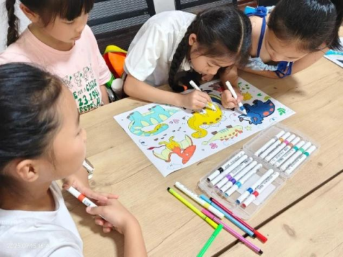 “七彩假期・暑期托管班”中,志愿服务队多维开展非遗主题活动,让文化传承与童心关爱深度融合。以“青蓝染韵”“竹纸流芳”为主题,通过多媒体展示、动画短片等形式,生动讲解扎染、油纸伞的非遗技艺与文化内涵,带领孩子们在动手体验中感受传统工艺的魅力;联合多支实践队开展“纸鸢飞舞・非遗润童心”特色课堂,以古诗意境导入,让孩子们在绘制非遗纹样的纸鸢创作中,实现古今交融的文化互动;围绕“十二生肖”文化、汉字奥秘等内容,通过动画导入、趣味游戏、手工实践等方式,将抽象的文化符号转化为可触可感的创意作品,既锻炼了孩子们的动手与思维能力,又让他们在童真创意中感悟文化智慧,让非遗文化在关爱与陪伴中焕发新生。