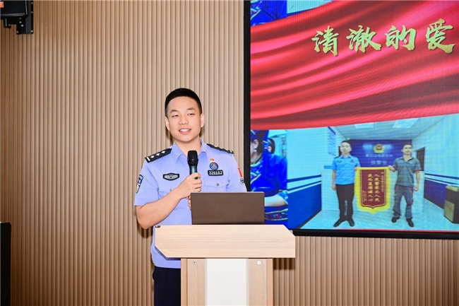 “清澈的爱,只为中国。”那艾边境派出所王俊华同志以《清澈的爱只为铸就信仰之魂》为题,分享自身戍边经历中那些刻入生命的忠诚瞬间,用朴实话语传递出对祖国最深沉的热爱,引发在场听众强烈共鸣。