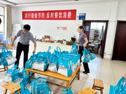 (图为半天妖员工在搬运餐食)