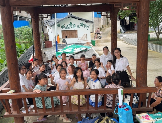 在柳班村,实践团通过展示壮锦布料、产品实物、讲解纹样故事等方式,向村民和儿童普及壮锦历史。针对当地儿童,团队精心设计了手工制作体验环节,提供手工材料,指导孩子们完成壮锦三角粽、崇锦故事冰箱贴等作品。现场50余名首次接触壮锦的儿童,在实践队员的帮助下,都完成了带有个人创意的小作品。